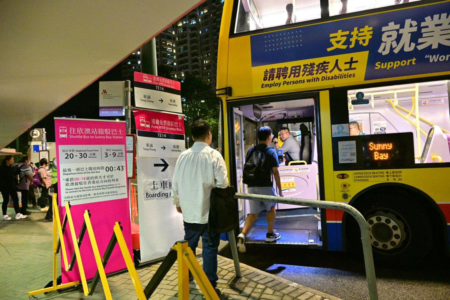 港鐵稱,正提供免費接駁巴士往返東涌站及欣澳站,最密約3分鐘一班,由於接駁巴士車程較長,約20至30分鐘,並有機會受路面情況影響,呼籲乘客預留充足的時間乘車。港鐵又提醒,平時會在東涌站乘搭尾班車往香港站方向的乘客,需乘搭凌晨00:18前由東涌開出的接駁巴士,才可於欣澳站接駁往香港站方向的列車。由東涌站往欣澳的尾班接駁巴士時間為凌晨00:43分,欣澳站往東涌的尾班巴士則為凌晨01:18分。