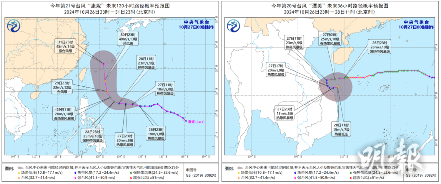 即時兩岸 雙颱風 | 「潭美」接近峴港 「康妮」趨向東海 (01:26) 發佈於 11 個月 前 2024 年 10 月 27 日 By 明報 颱風「潭美」10月27日凌晨1時集結在距離越南峴港市東偏北方向約185公里海面,強度為強熱帶風暴級,最大風力10級,最大風速為101公里時速。 「潭美」將以每小時15至20公里的速度向偏西方向移動,強度逐漸減弱。 另一個颱風「康妮」10月26日晚上11時位於西太平洋,距離琉球群島那霸市東南方向約1270公里,強度為熱帶風暴級,將以每小時15至20公里的速度向西偏北方向移動,強度緩慢增強,月底移入東海。(中央氣象台) 相關文章:康妮潭美編輯推介颱風 Up Next 江蘇拘首名農民縣長宋世敏 綽號「三蟒」領導黑惡集團 (16:53) 不要錯過 日本16隻朱䴉31日將歸還中國 (17:06) 繼續閱讀 贊助商 猜你喜歡 周末近天文大潮 強颱料入400公里 麥德姆 | 珠西海域漁船明晚全部回港避風 (21:56) 颱風撲越南 逾25萬人疏散 樺加沙重創台灣 18死107傷7人失蹤 (13:24) 博羅依越南登陸 至少11死20人失蹤 (15:10) 「博羅依」今掠瓊南 鐵路停運三亞停課
