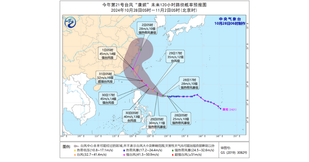 颱風康妮將橫過西北太平洋,並登陸台灣。台灣中央氣象署預料,康妮今(28日)起轉向北移動,周三至周五(10月30日至11月1日)影響台灣。由於康妮強度將接近中度颱風上限,暴風半徑約280公里,暴風圈大,不排除接近台灣過程中會同時發布海陸颱風警報。