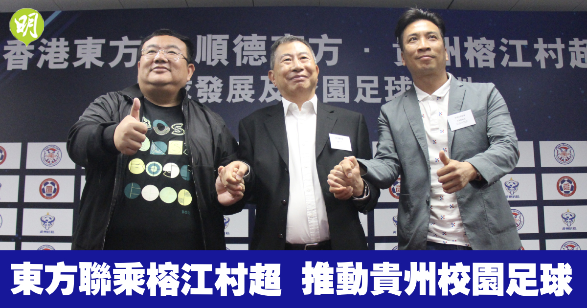 香港東方體育會今早(28日)與順德東方及貴州榕江村超舉行簽約儀式,將會融合三方資源協助貴州校園足球培訓。東方體育會副主席游永強另透露在馬鞍山白石興建訓練基地的進展「只欠東風」,待政府正式批覆後會着手施工,盼趕及來年第3季啟用。
