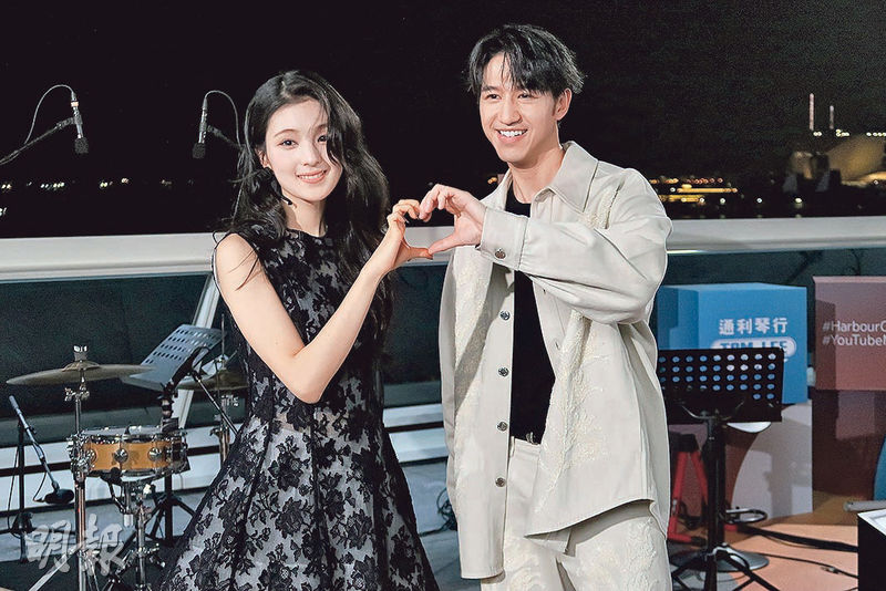 【明報專訊】馮允謙(Jay)前晚跟有「小IU」之稱的17歲韓國女歌手GYUBIN在尖沙嘴舉行音樂活動,吸引大批歌迷到場支持。GYUBIN甫上台即以廣東話說:「我愛你哋!」並笑稱廣東話是Jay教她講的,之後邀請觀眾一齊唱歌,「識就大聲啲」。她以結他和鋼琴自彈自唱韓文及英文歌,再獻唱廣東歌《至少做一件離譜的事》及國語歌《小幸運》,又以英語分享感受,「第一次來港表演,心情很緊張,廣東歌很難學,我唱得好聽嗎?」當聽到台下報以歡呼聲,她即派心心稱「I Love You」、「I Love Hong Kong」逗粉絲開心,她續說:「大家反應很好,我很感動,希望下次來開演唱會。」壓軸登場的Jay除與GYUBIN合唱一曲英文歌,也獨唱多首歌,他演唱時興奮滿場飛,還大搞氣氛,叫觀眾亮起手機燈。