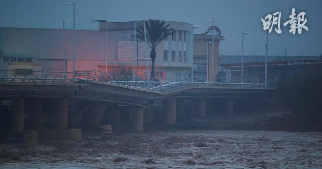 巴倫西亞部分地區停電,電話線中斷,數十人整晚留在貨車、汽車、屋頂和橋上等待救援。巴倫西亞市宣布,周三所有學校停課,體育活動暫停,公園繼續關閉。受暴雨和強風影響,原定降落在巴倫西亞機場的12個航班改降西班牙其他城市。(BBC/法新社/中新社)