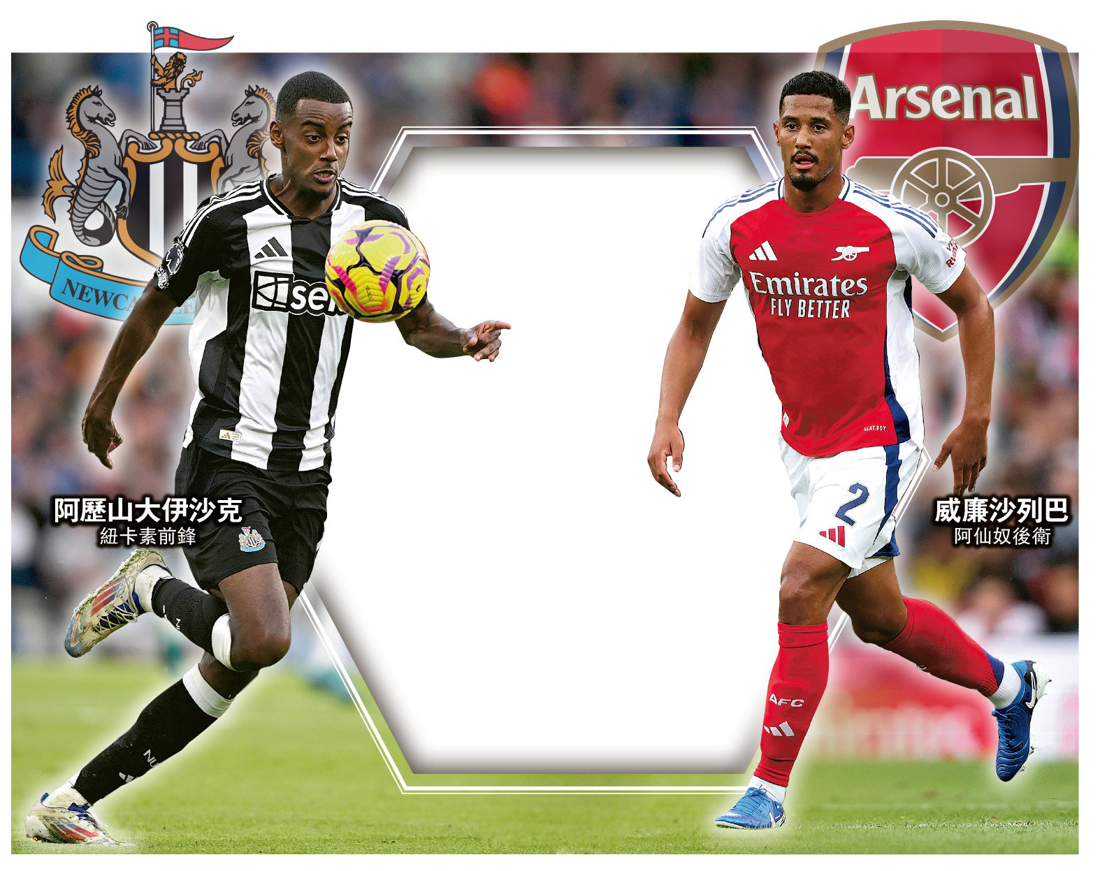 【明報專訊】英超三甲球隊曼城、利物浦及阿仙奴今晚齊亮相,其中近兩場聯賽只拾1分的「兵工廠」續鬧後衛荒,卻有停賽完畢的後防通天老倌威廉沙列巴,作客紐卡素時及時復出,勢當雷霆救兵,並獲「紅軍」中堅華基爾雲迪積克高度評價,有望力抗以阿歷山大伊沙克為首的「喜鵲」火力。