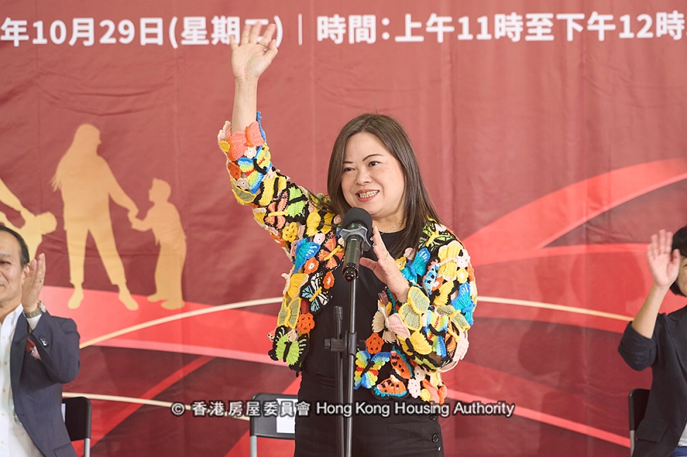 羅淑佩當日衣著亦花心思,因她特意穿花蝴蝶外套到訪富蝶邨,配搭上可謂「襯到絕」。