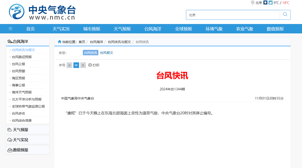 即時兩岸 颱風「康妮」快速減弱 中央氣象台停止編號 (21:08) 發佈於 12 個月 前 2024 年 11 月 1 日 By 明報 颱風「康妮」掠過福建、浙江沿海進入東海後,威力快速減弱,已於11月1日晚上在東海北部海面上變性為溫帶氣旋,中央氣象台晚上8時對其停止編號。 不過「康妮」外圍雲系仍帶來暴雨,受其影響,中國東南沿海地區出現強降水,浙江、福建、江蘇等地有14條河流發生超警戒線洪水。(綜合報道) 相關文章:康妮編輯推介颱風 Up Next 太空站交鑰匙 神舟18號三太空人後日回地球 (01:10) 不要錯過 「康妮」在台東縣登陸 全台27傷一死 (16:18) 繼續閱讀 贊助商 猜你喜歡 「麥德姆」攜雨捲西南 廣西再迎山洪災害 麥德姆登陸風力超樺加沙 粵桂瓊多市「五停」 轉移逾35萬人 麥德姆影響 花江峽谷大橋暫停遊客上橋 (17:04) 「麥德姆」襲粵 湧3.5米風暴潮 麥德姆 | 廣東轉移逾15萬人 7市啟動應急響應 (00:59) 廣東省委書記黃坤明:全力以赴防禦這場颱風 (15:50)