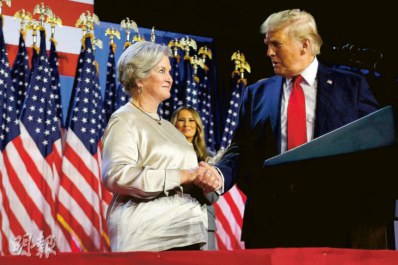 【明報專訊】美國總統當選人特朗普周四(8日)着手組織執政班底,任命今屆大選頭號輔選功臣懷爾斯(Susie Wiles)在新一屆政府明年1月上台後擔任擁有巨大影響力的白宮幕僚長,這也是美國史上首次有女性擔任這個執政中樞職位。懷爾斯被視為令特朗普在今屆大選的競選工程變得有條理和紀律的關鍵人物,有評論形容她現在是全美最有權勢的政治幕僚。副總統當選人萬斯等共和黨人紛紛稱讚這項任命。