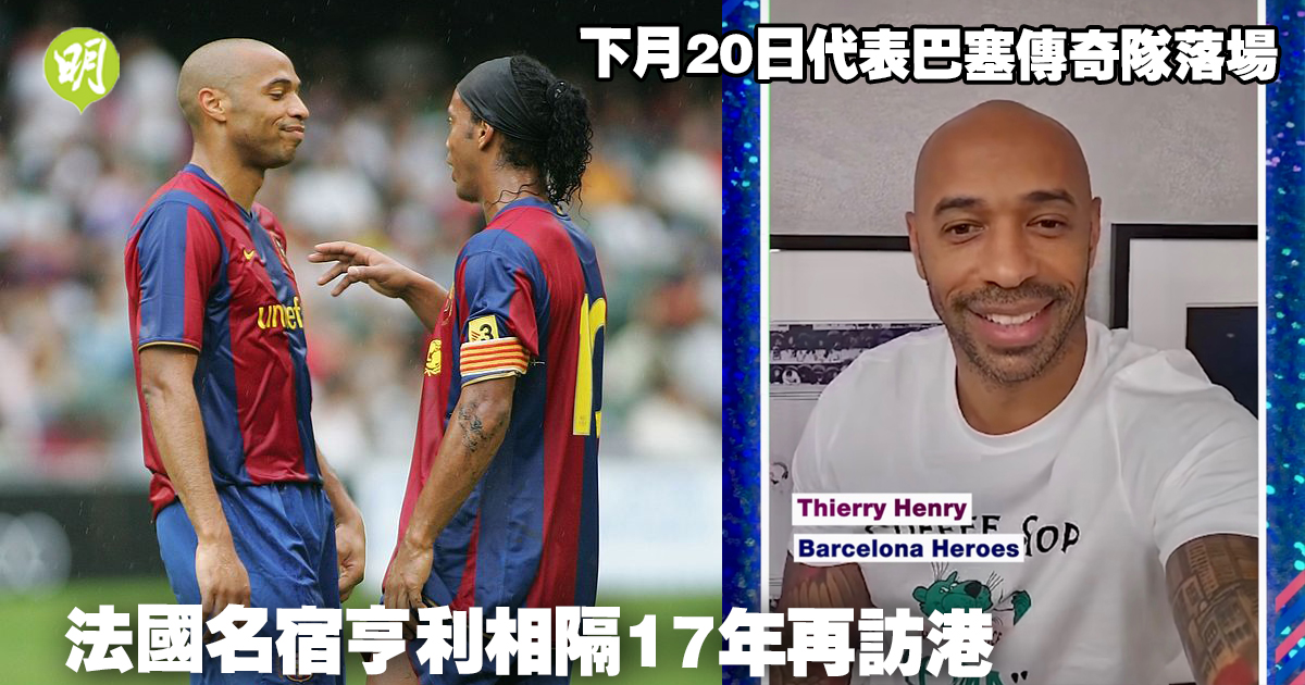 Legends Assemble傳奇球星表演賽系列「皇家馬德里球星對巴塞隆拿傳奇」將於下月20日晚上8時在香港大球場舉行。主辦單位昨晚(12日)在社交網公布,法國隊名宿亨利將會相隔17年再度訪港,代表巴塞傳奇隊落場獻技。