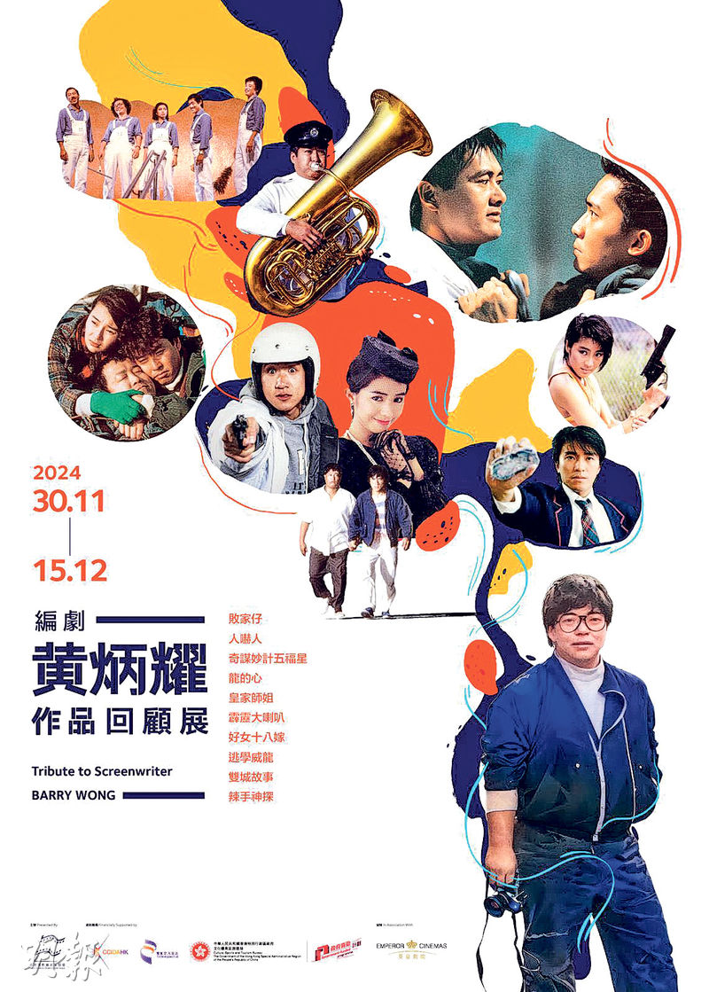 【明報專訊】香港電影編劇家協會將於11月30日至12月15日舉辦《編劇黃炳耀作品回顧展》,重映10部黃炳耀1980年代編劇作品,包括《逃學威龍》、《奇謀妙計五福星》、《皇家師姐》、《霹靂大喇叭》、《龍的心》、《敗家仔》、《好女十八嫁》、《人嚇人》、《雙城故事》與《辣手神探》,在尖沙嘴iSQUARE英皇戲院放映,各場門票於該戲院、英皇戲院網站與手機應用程式發售。每場映後有嘉賓到場跟觀眾交流,包括陳嘉上、岑建勳、元彪、張同祖、龍文康、吳煒倫、陳詠燊、張偉雄、司徒卓漢與林紀陶;還有兩場由文雋主持「黃炳耀劇本的特色與黃金時期的香港電影」與「當下的編劇如何借鑑八十年代香港電影的多元性」映後座談會。