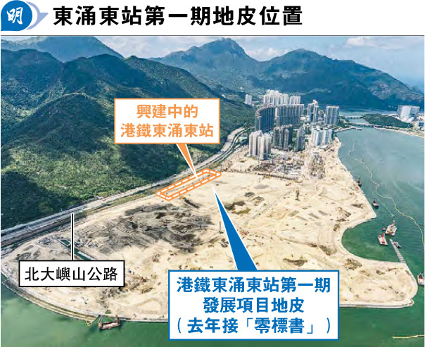 港鐵昨日公布,東涌東站一期發展項目,即日起邀請發展商或財團提交發展意向書,並於11月21日(下周四)截止。項目位於興建中的港鐵東涌綫延線東涌東站對面,該站預計2029年竣工,項目將分期進行發展,第一期位於項目東南部分,其住宅樓面上限約32.3萬方呎樓面。