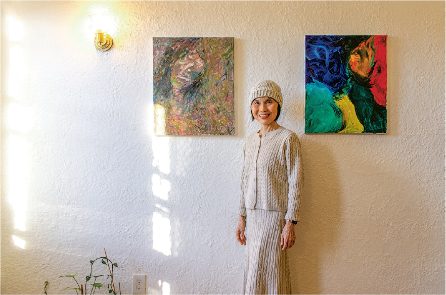 走過鬼門關的人對生命格外珍惜。如今,她每天畫上幾個小時,創作的熱情燃燒,變成幾百幅畫。她跟我解釋畫展的名字由來:「我人生經歷過很多坎坷,但生命是美好的,值得我們摯愛。」