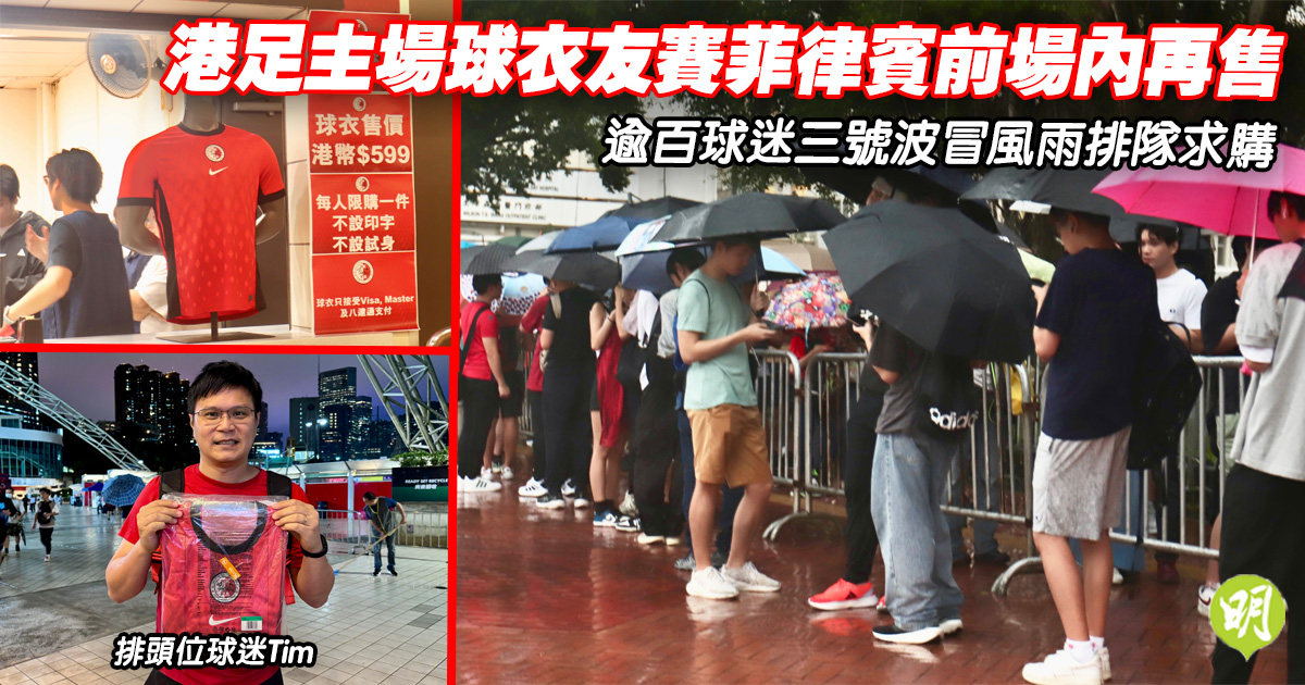 港足|港足主場球衣友賽菲律賓前場內再售 逾百球迷三號風球下場外冒雨排隊求購 (20:30)