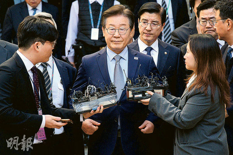 【明報專訊】韓國最大在野黨共同民主黨領袖李在明被控違反《公職選舉法》一案,首爾中央地方法院刑事合議庭周五(15日)一審裁定檢方對李在明提出的兩項指控成立,判監1年,緩刑2年,李在明稱會上訴。如終審維持原判,李在明將隨即喪失議員資格,亦不能競選總統。