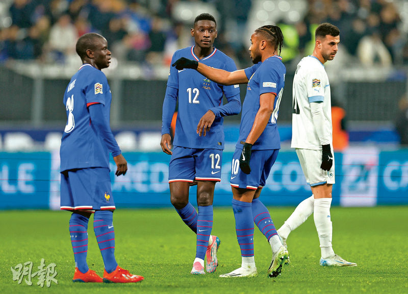 【明報專訊】缺少基利安麥巴比的法國隊昨在歐洲國家聯賽A2組鋒力減弱下,只能在主場悶和包尾的以色列隊,賽後5戰得10分續排次席,但仍與作客以1:0挫比利時隊的榜首意大利隊提早一輪出線8強。「高盧雄雞」主教練迪甘斯賽後稱,麥巴比今輪國際賽檔期被棄用不存在被停賽問題,而是對方現處境很複雜,需要各方支持。