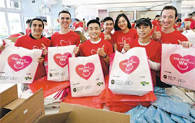 【明報專訊】由香港精英運動員協會、香港基督教女青年會發起嘅「愛心送暖行動」踏入20周年,今年活動馬會義工隊都派出逾160名成員參加,多名馬會騎師包括潘明輝、賀銘年等都一齊「落地」,前日一齊去到保良局雨川小學做包裝工,協助整理禮品包,準備向2800個有需要嘅家庭及長者派送心意。