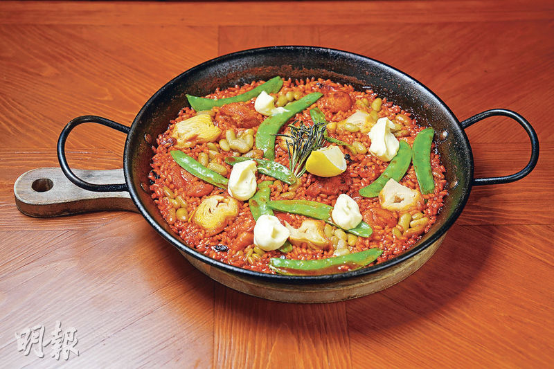最後,如要品嘗西班牙最地道的美食,那就非巴倫西亞燉飯莫屬。Javier將雞肉、西班牙garrofón白豆、青豆及巴倫西亞bomba米重塑這道經典燉飯,帶出最原始的風味。飯粒飽滿、口感濕潤濃稠,雞肉熟度剛好,軟嫩多汁,香料味雖濃,但仍有一絲白豆清香。●