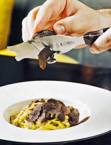 【明報專訊】冬天菇菌當造,意大利餐廳Cantina主廚Matteo Caripoli趁機創作出5道時令限定菜單Funghi Collection。這個時節,最好是吃松露。廚師在自家製全蛋意大利幼麵上,豪爽地刨下大量意大利皮埃蒙特白松露或黑松露片,意粉掛滿松露醬汁,滿腔松露芳香,這道黑松露意粉($298)叫人難忘。另一道意大利雲吞卷($208),廚師將手工意粉捲成玫瑰花模樣,以野生香菇、白菇、雞油菌、牛肝菌、羊肚菌及雞肉作餡料,質感像肝醬柔軟,味道濃郁,散發陣陣菇香。還有芝士焗蘑菇意式煎餅($178),表面金黃,香脆芳香,用刀切下時,便會看見一層層的煎餅夾着蘑菇餡料,賣相與口感令人聯想起Matteo Caripoli的招牌肉醬千層麵,很冶味。此外,還有香酥的意式炸物拼盤Fritto misto alla piemontese($188)、蘑菇雪糕伴牛肝菌蛋糕配松露雲呢拿醬($98)。●