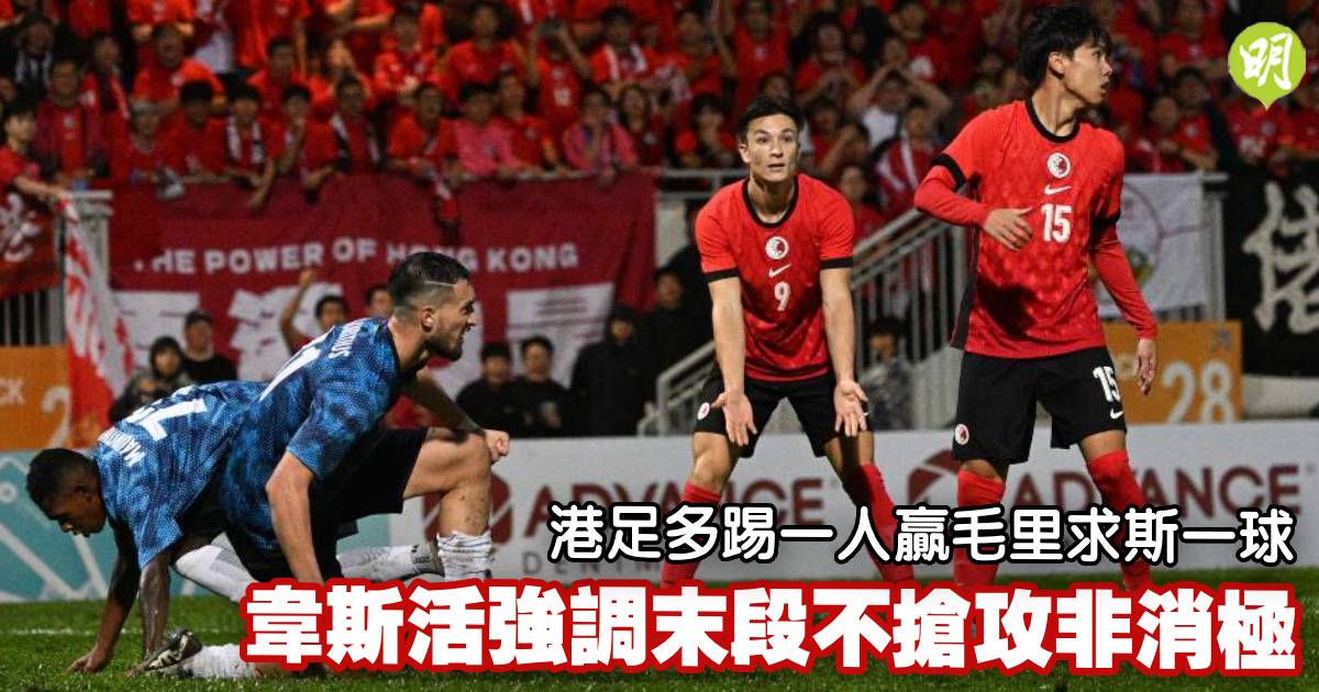 韋斯活其後出席賽後記者會,指出對手在42分鐘少踢一人後把防線縮後,讓致力磨合進攻的球隊有額外得着,「我們未試過面對敵軍10人應戰、全員縮後的情境。來年3月展開的亞洲盃外圍賽有機會對實力較弱的對手,所以此戰是很好的一課,研究如何撕破密集的防線」。他強調即使僅勝一球也感到滿意,稱末段麾下控球未再搶攻,是保護勝局的表現,「不論1球還是3球,也只是一場勝利。對手尾段連中堅都壓前了,我們要保持警惕,若因一時大意地被追和,這會讓球迷更失望。我們此戰換入吳宇曦和陳肇鈞,也顯示我們到最後一刻還是以爭勝,否則我們可以換入杜度等後衛,踢5名後衛穩守戰局」。