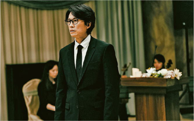 【明報專訊】話題電影《破.地獄》高潮戲裏,許冠文飾演的「哈囉文」(下稱文哥)辭世,喪禮靈堂上由他的生意拍檔魏道生(下稱道生,黃子華飾)宣讀其遺願,希望他一對子女為他舉行道家喪儀破地獄;本來準備操作相關儀軌的行家一眾「喃嘸佬」隨即起哄,高呼女子因有月事污穢會破祖師爺法力,群起反對,道生即扯高噪子,與他們進行一場「激辯」,場面立即令人想起黃子華不久之前才主演的兩齣賣座作《飯戲攻心》與《毒舌大狀》,尤其是後者,黃子華的演出和念白方式,三部作品幾乎如出一轍。簡言之,就是黃子華的招牌簽名式表演,流露出他搞棟篤笑的技倆和風格。