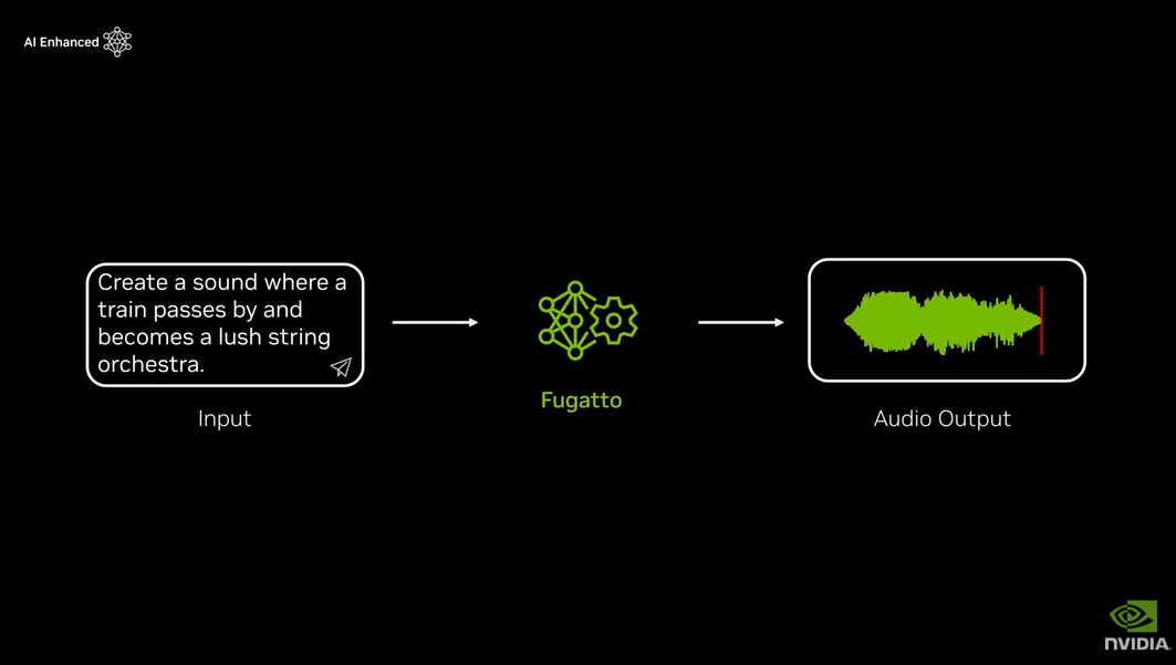 Fugatto為FoundationalGenerative Audio Transformer Opus 1的縮寫。音樂製作人可用Fugatto製作聲音的原型或編輯歌曲構想,嘗試各種風格、聲音和樂器,也能加入效果,提升現有曲目音訊質素。