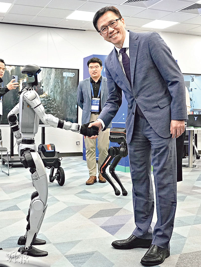 【明報專訊】生產力局噚日舉辦「粵港澳大灣區國際人工智能與機器人高峰會2024」,今年特別設置展示區,邀請咗5間參展商展示來自唔同地區嘅最新人形機械人技術,同埋點樣應用喺新興行業。創新科技及工業局長孫東噚日出席活動,仲同機械人握手𠻹!