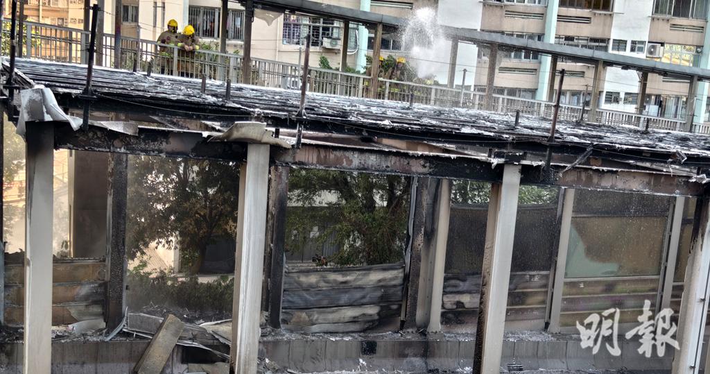現場所見,部份隔音屏被火燒毁,嚴重熏黑。綜合網上圖片及短片所見,事發時火勢猛烈、火光熊熊,黑煙席捲半空,而火勢蔓延至隔音屏頂部。