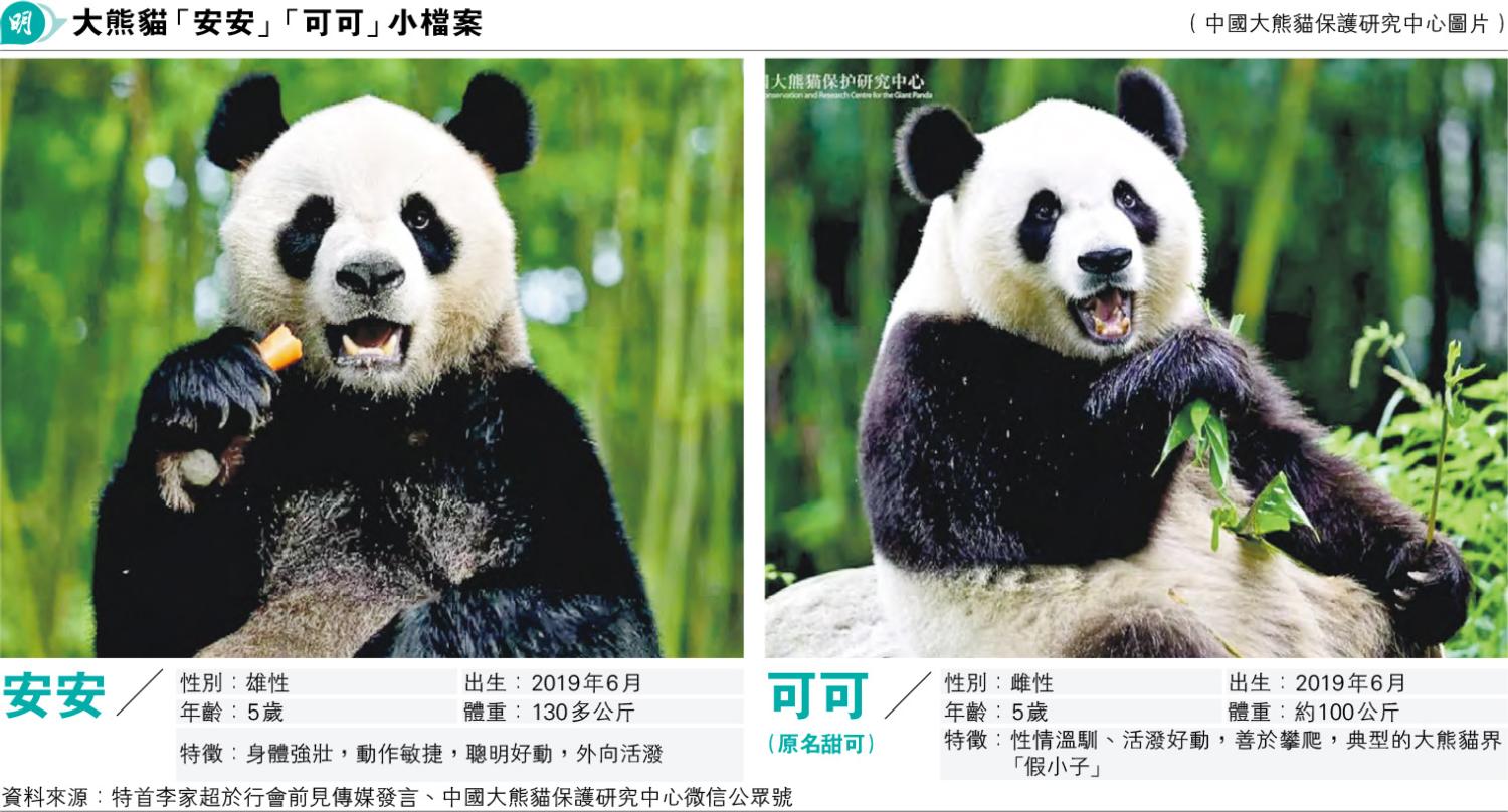 即時港聞 中央贈港大熊貓下月8日正式與公眾見面 (10:40) 發佈於 11 個月 前 2024 年 11 月 27 日 By 明報 特首李家超今日(27日)於Facebook透露,政府與海洋公園將於12月7日舉行「大熊貓亮相儀式」,「安安」和「可可」於儀式翌日(12月8日)便會正式與公眾見面;儀式當日將一併公開大熊貓命名、繪畫比賽結果,目前海洋公園共收到22000多份命名建議和3000份繪畫作品。 相關文章:熊貓編輯推介 Up Next 三跑道系統今啟動兼首度同步升降飛機 李家超冀全速恢復航空運力 (16:46) 不要錯過 將軍澳工人被剷泥車夾腳 獲救送院 (17:38) 繼續閱讀 贊助商 猜你喜歡 黃翠如訪大熊貓基地 見證「加加」「得得」成長 大熊貓「吉年」「福將」首在京度中秋 動物園製「窩頭月餅」 (15:14) 四川熊貓野化訓練 無間斷啃竹子賣萌 JEWELLERY:天然、養珠有什麼分別? 寶石大師開班 探索珍珠閃亮之謎 大熊貓|港鐵站列車變熊貓打卡點 49個郵筒放「家姐」「細佬」雕塑【附打卡地點詳情】 (20:24) 大熊貓龍鳳胎外表如倒模 三點分辨「家姐」「細佬」 (10:34)