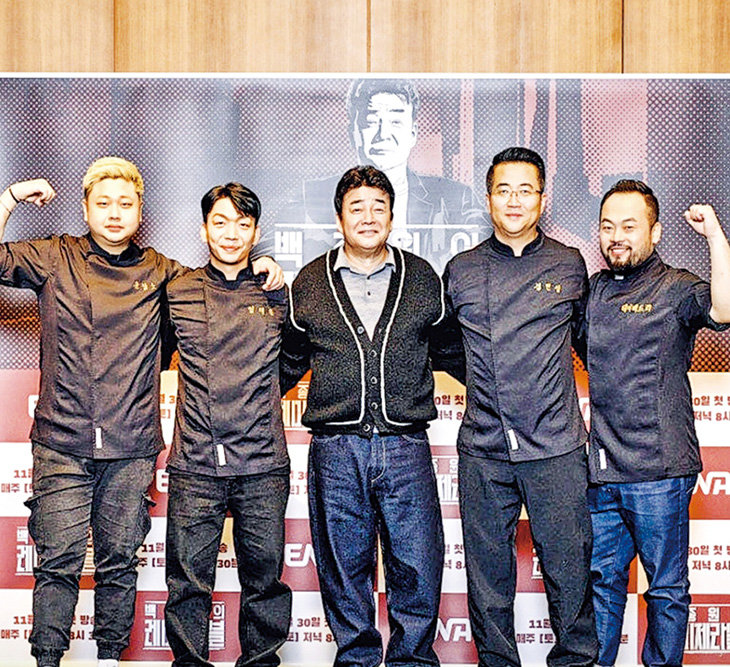 【明報專訊】《黑白大廚:料理階級大戰》評判白種元主持韓國有線頻道ENA新節目《白種元的孤星淚》,本月30日首播,昨在首爾舉行記者會。節目在白種元及4位名廚的指導及帶領下,20名參賽者在100天內進行創業競賽。4位名廚中3名來自《黑白大廚》「黑湯匙」,包括「肉類黑幫」李大衛、「外送員廚師」林泰勳及「料理狂人」尹南魯。