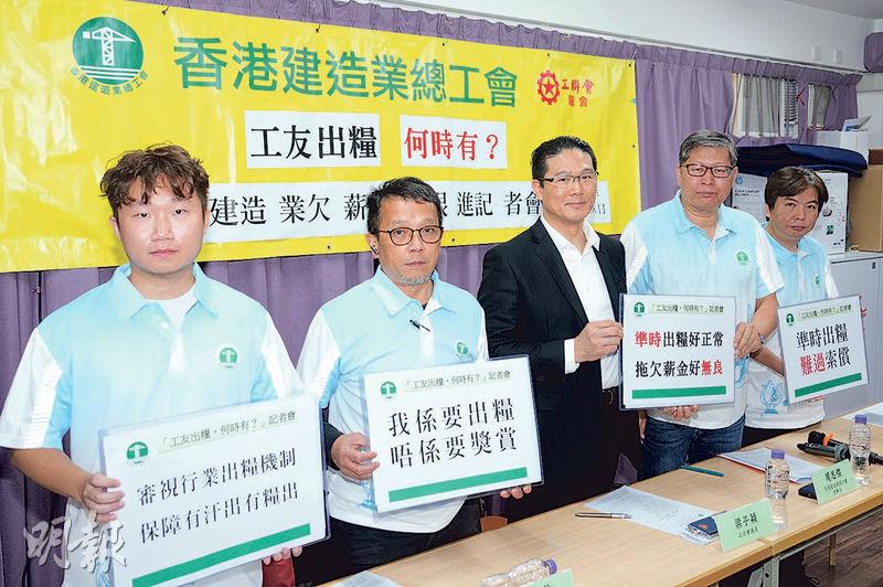 【明報專訊】香港建造業總工會(建總)昨表示,今年初至今接獲約200多宗求助,牽涉2000名地盤工人和二判,遭僱主拖欠2至7個月不等的薪金及工程費等,涉逾3億元。工會形容今年「拖糧」情况特別嚴重,今年7月起更收到「密集式求助」,也由私人工程蔓延至政府工務工程,擔憂明年問題加劇,促政府妥善監管及處理。