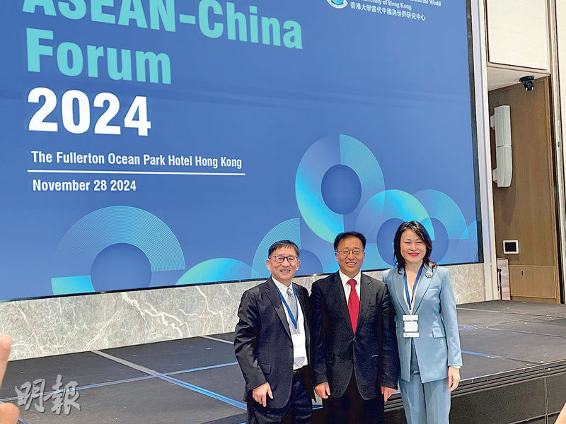 【明報專訊】香港大學智庫當代中國與世界研究中心(CCCW)昨日假香港富麗敦海洋公園酒店舉行「2024東盟-中國論壇」,中國外交部駐港特派員崔建春和中國駐東盟大使侯艷琪分別開幕致辭和發表主題演講,港府一帶一路專員何力治則參與主題討論。其中崔建春形容香港作為中國與世界之間的「超級聯繫人」和「超級增值人」,在中國-東盟合作上可按3個英文以B開首的關鍵詞發揮優勢,即善用自身與東盟之間的天然「紐帶」(bond)、擔當中國與東盟經貿合作的「橋樑」(bridge),以及作為中國與東盟推動一帶一路合作的「基地」(base)。