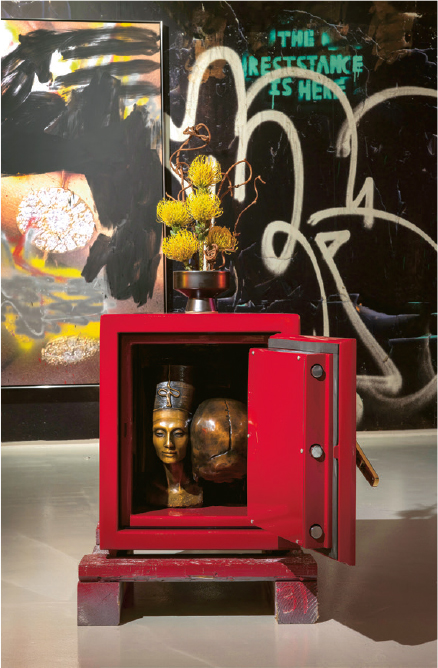 Erizku擅長借用音樂、流行文化和體育符號的視覺語言,創作以非洲中心為視角的敘事。展覽另一焦點是置放於精心設計的「文化保險箱」中的5件青銅雕塑,雕塑融合了埃及女王娜芙蒂蒂的形象,與多種物品交織在一起,包括蜘蛛、骷髏、蠍子,以及獅身人面像的小雕像。Erizku為了尋找娜芙蒂蒂半身像,展開了漫長的旅程,最後去到半身像的所在地柏林深入研究,獲得創作此雕塑系列的靈感。藝術家透過作品,重塑娜芙蒂蒂而至一般黑人在殖民敘事中被削弱的形象。