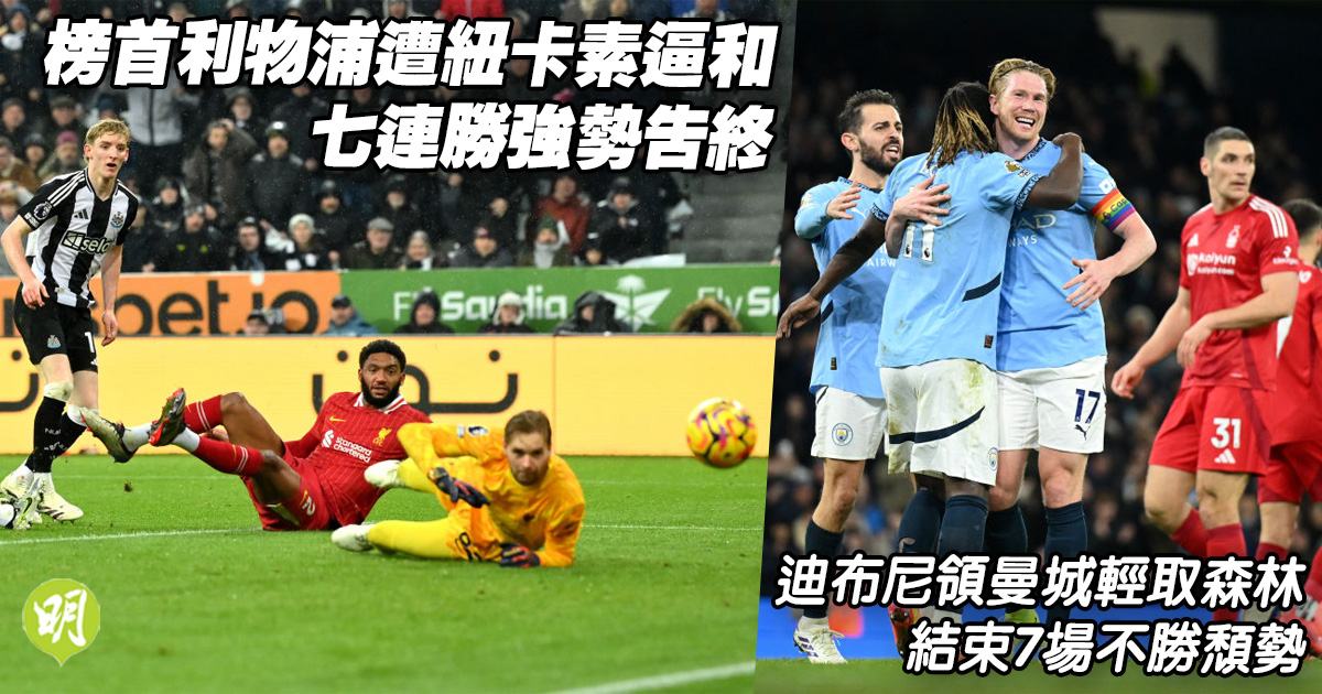 英超|榜首利物浦遭紐卡素逼和連勝告終 迪布尼領曼城輕取森林結束7場不勝頹勢 (19:45)