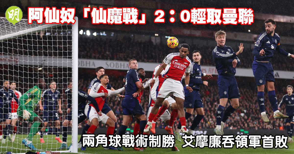 英超|兩角球戰術制勝 阿仙奴「仙魔戰」2:0輕取曼聯 艾摩廉吞領軍首敗 (17:25)