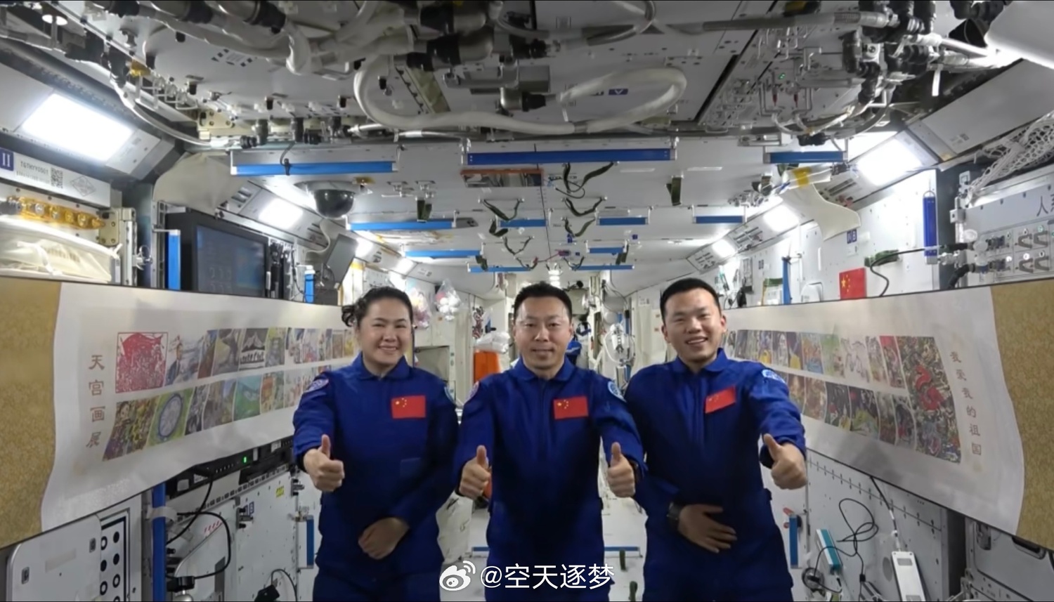 第四屆「天宮畫展」12月14日在中國太空站、北京、澳門同步開展。神舟19號太空人乘組進行在軌展示並視像祝福,神舟17號太空人乘組則在北京現場與青少年交流互動。