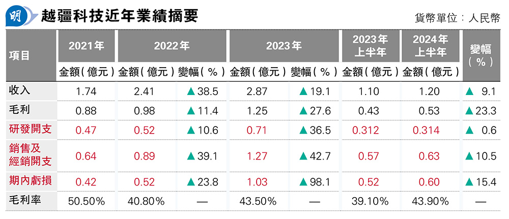 全球協作機械人市場規模由2019年的4.67億美元大幅增加至2023年的10.4億美元,複合年增長率為22.2%,預期到2028年達49.5億美元,2023年至2028年的複合年增長率為36.6%,市場規模料仍快速增長。越疆的收入由2021年的1.74億元以複合年增長率28.3%增加至去年的2.87億元,但今年上半年收入增速大幅放緩至9.6%。其中一原因,是今年上半年集團的四軸收入按年跌9.2%,越疆指是由於其有策略地調整教育場景產品組合,導致若干四軸產品銷量下降。