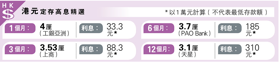 經濟 港元定存工銀亞洲新客1個月年息見4厘 發佈於 1 年 前 2024 年 12 月 18 日 By 明報 【明報專訊】港元定存高息精選1個月年息見4厘,為工銀亞洲全新客戶港幣新資金定存推廣之特惠年利率。 (請看附圖) 相關文章: Up Next 巴克萊研究報告:巴克萊:料明年美減息兩次 不要錯過 張兆聰:人幣貶值壓力大 困擾股市 繼續閱讀 贊助商 猜你喜歡