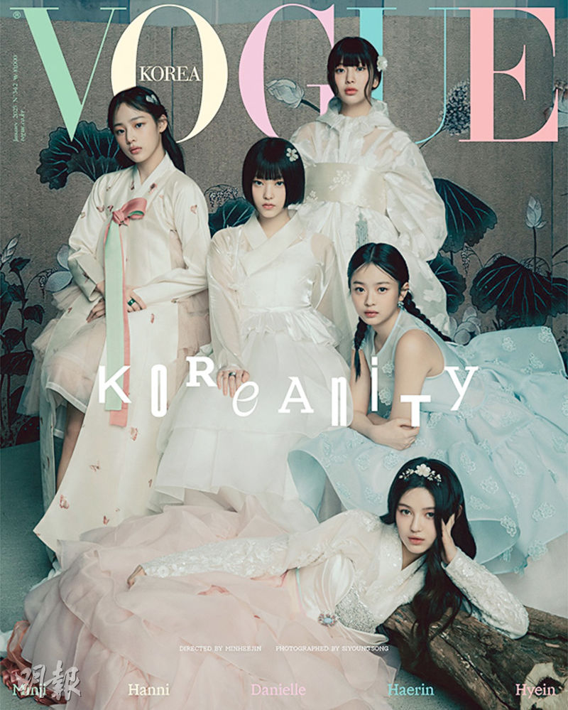 另外,NewJeans成員Danielle剛獲名表OMEGA邀請擔任品牌宣傳大使,並透過官方網站發放最新廣告照片。韓國時尚雜誌《Vogue》昨日亦公開新春特別版封面,NewJeans成員穿著韓服亮相,並且不是以女團名義登場,而是以個人身分拍照,因此雜誌封面未提及NewJeans,只印有Danielle、Minji、Hanni、Haerin及Hyein的名字;她們所屬事務所ADOR前社長閔熙珍擔任這輯照片的「特別創作總監」,似要向外宣示她們同一陣線,未知ADOR母公司HYBE有何反應。