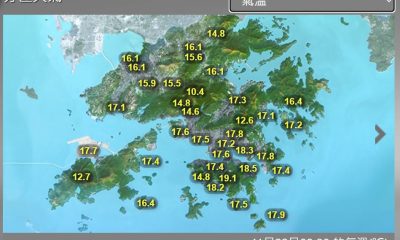 【16:24】天文台發出寒冷天氣警告。天文台預料,周五(20日)早上寒冷,市區最低氣溫約12°C,新界再低幾度。(天文台)