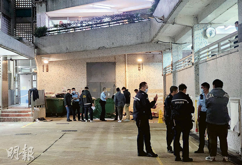 警方昨午5時許接獲報案稱,一名女子及一名男嬰疑從高處墮下,身體多處嚴重受傷,倒卧太平邨平靜樓其中一個出入口對開垃圾站附近。救護員接報到場,即場證實兩人死亡。警方臨時封鎖大廈出入口及垃圾站附近路段,並以白布及綠色帳篷分別遮蓋兩具遺體,兩具遺體相距約兩米。警員分別登樓蒐證及翻查附近閉路電視片段。現場所見,警員在平靜樓頂樓用電筒照向地下,調查兩人墮樓位置。