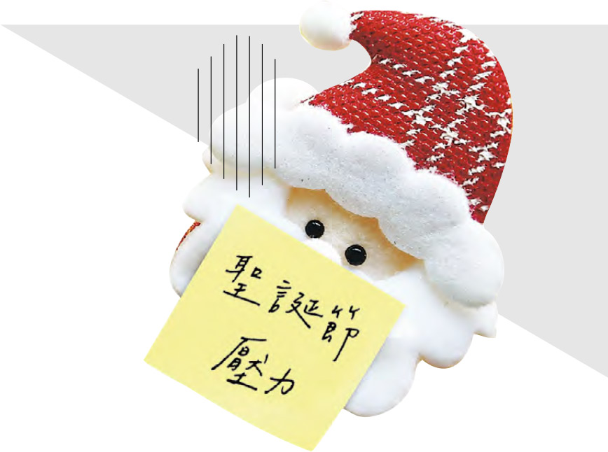 【明報專訊】聖誕、元旦、農曆新年,節慶假期接踵而至,亦是年末歲晚趕工趕貨的時間。繁忙工作已令人焦頭爛額,還要計劃親友聚會、買禮送禮,滿足身邊人的期望……是否有點喘不過氣?又或是,濃濃聖誕氣氛,勾起了與前任的幸福回憶,為免觸景生情,每每看見節日裝飾就掉頭走,只想獨自待在家中。「聖誕節壓力」一詞,來自德文Weihnachtsstress,泛指聖誕節期間因各類原因而產生的壓力。佳節當前,是否感到壓力重重?專家處方「壓力疫苗」,讓你安度佳節!