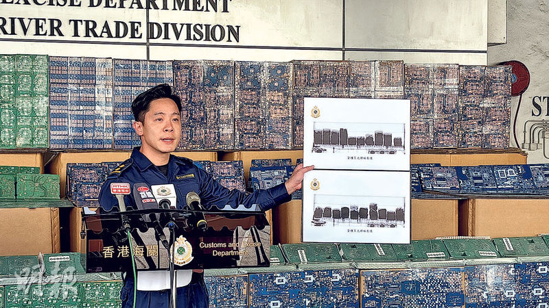 港聞 檢90萬塊走私電路板 市值7000萬 發佈於 12 個月 前 2024 年 12 月 25 日 By 明報 【明報專訊】海關本月9日鎖定一艘準備由香港前往馬來西亞的遠洋船搜查,船上兩個報稱載有混合金屬的40呎貨櫃,其X光掃描影像有可疑。海關從中檢獲超過90萬塊未列艙單的印刷電路板,市值約7000萬元。該電路板廣泛應用於平板電腦及智能手機,由於內地對該產品需求大,海關相信走私分子藉迂迴路線,首先將貨物走私到馬來西亞,之後由不同途徑走私往內地。海關估計若該批貨物成功走私返內地,可逃避約700萬元稅項。海關港口及海域科貨櫃貨物檢查組督察岑偉平(圖)昨交代案情。 相關文章: Up Next 兩旅客體內藏115粒「毒丸」被捕 不要錯過 警破128騙案 涉款6800萬 拘124傀儡戶口持有人 繼續閱讀 贊助商 猜你喜歡