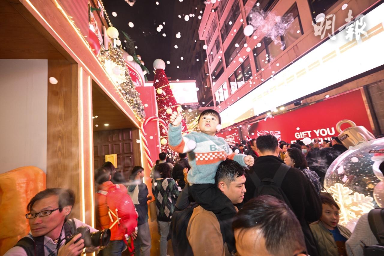 不少人今日(24日)到尖沙嘴度過平安夜,尖沙嘴碼頭及海港城一帶傍晚只見很多父母帶同子女觀賞裝飾。本報記者在今午2時至4時發現,除了海港城、半島酒店外等聖誕裝飾「打卡位」外,當區下午整體人流與周末相若。有尖東海旁餐廳今日訂座率約六、七成,其餐廳助理經理稱今年平安夜生意較去年少兩成,料新冠疫情後,更多港人及遊客傾向在香港以外旅遊。有茶餐廳員工認為生意「不過不失」,惟仍未及新冠疫情水平。