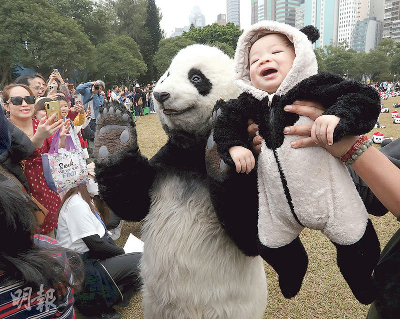 【明報專訊】大熊貓主題展覽《PANDA GO!香港遊》昨於西營盤中山紀念公園續展,展出逾1800隻大熊貓雕塑。早前主辦方AllRightsReserved於網站開放認捐1000隻用於展出的大熊貓雕塑,將收益捐予海洋公園用作大熊貓保育,昨午3時起認捐市民到場領取。有市民代家屬認購共6隻大熊貓雕塑,並就地擺立拍照通知家屬「收貨」,途人見狀亦借景打卡拍照。