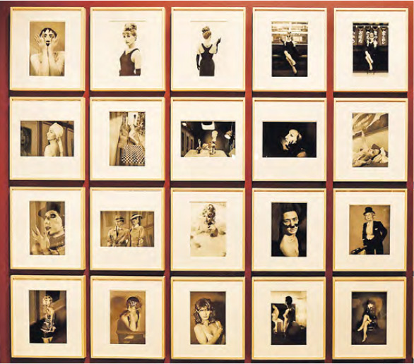 展廳這端,森村泰昌小而密的黑白肖像考驗觀眾眼力;展廳另一端,辛蒂.雪曼《雜誌插頁》系列(1981)作品尺寸較大、色彩飽滿,為觀眾帶來視覺衝擊。該系列作品原是辛蒂.雪曼應美國《藝術論壇》雜誌邀請所作。橫向構圖、簡約背景,讓觀眾的眼神不自覺放在肖像中辛蒂.雪曼的面孔上。鏡頭下,她模仿着色情雜誌中的女性形象,用眼神與動作傳遞着脆弱、不安、恐懼與欲望。因過於接近色情雜誌風格,作品最終未在《藝術論壇》上刊出。然而,仔細觀察會發現,儘管作品中辛蒂.雪曼的衣衫並不整齊,但她的絕大部分身體部分都被覆蓋,譚雪凝說:「這些圖像其實並不色情。這是一個很有趣的現象:當我們想到色情雜誌內頁時,往往會對其中女性的表現和故事產生先入為主的偏見……我們觀察這些作品時,我們的潛意識便影響了我們的視覺感受。」