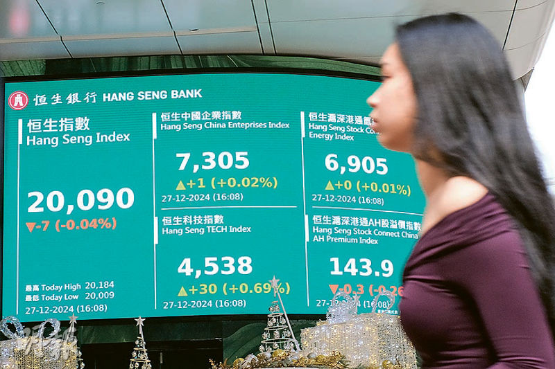 第一上海首席策略師葉尚志指出,港股假日氣氛未完全散去,下周有元旦假期,市場臨近年結偏向觀望。展望明年,他稱內地房地產仍處止跌回穩階段,內需消費有待進一步提振,特朗普上任美國總統,以及美國聯儲局減息步伐或放緩,估計成影響港股表現主要變數。