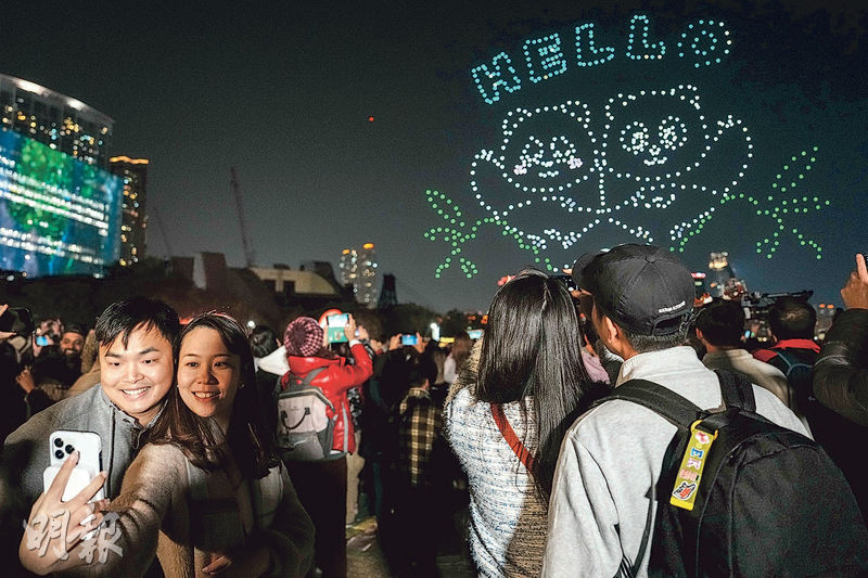 【明報專訊】「PANDA GO! 香港遊」煙火無人機匯演昨晚於西九文化區藝術公園舉行,為本港首場以無人機搭載煙火的匯演,多個熊貓及香港地標圖案出現於維港上空。有首次觀看無人機的旅客滿意表演,亦樂見活動能共聚社會、與友同樂。