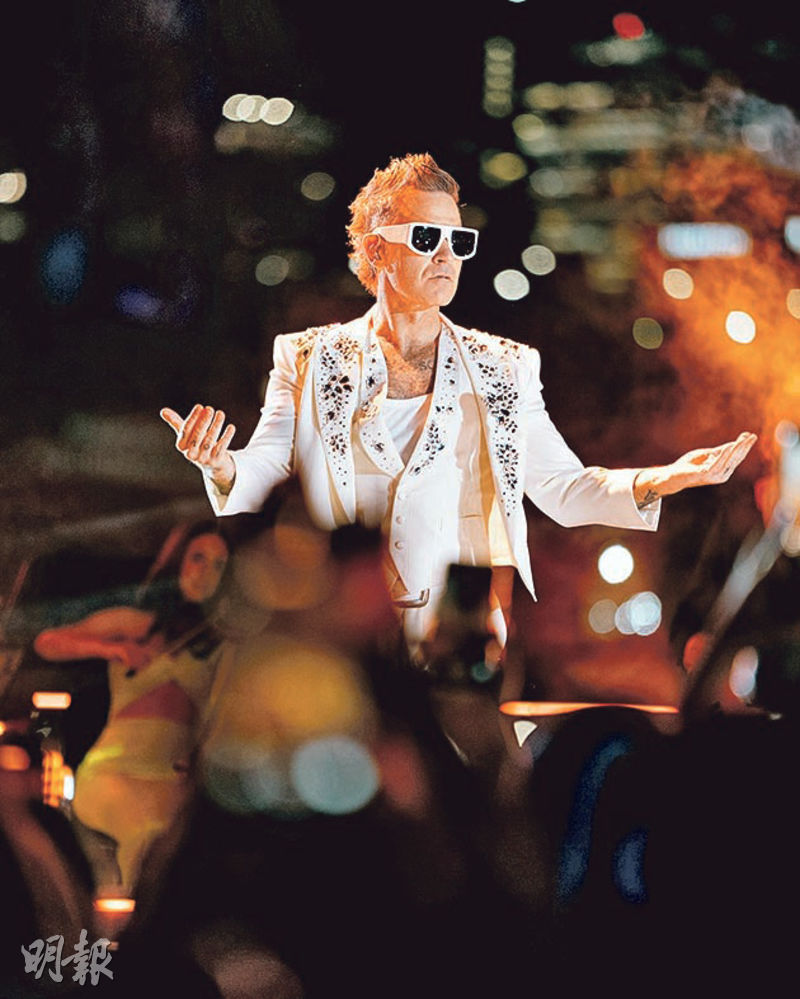 【明報專訊】《大娛樂家》米高格基斯(Michael Gracey)執導,英國樂壇天王Robbie Williams透過電腦特技化身猩猩演繹自傳式歌舞片《原始巨星》(Better Man),美國將於本月17日開畫,香港提早一天上映。Robbie日前擔任悉尼除夕倒數音樂會表演嘉賓,趁機宣傳新片,惹來網民不滿,指摘此舉等同浪費公帑。昨日下午他移師墨爾本聯邦廣場,舉行一場免費演唱會,繼續為新片造勢,並主動回應網民批評,他說:「你以為我搭飛機來澳洲,只是為了重唱《Angels》嗎?」貫徹這個樂壇壞孩子的惡搞和幽默。