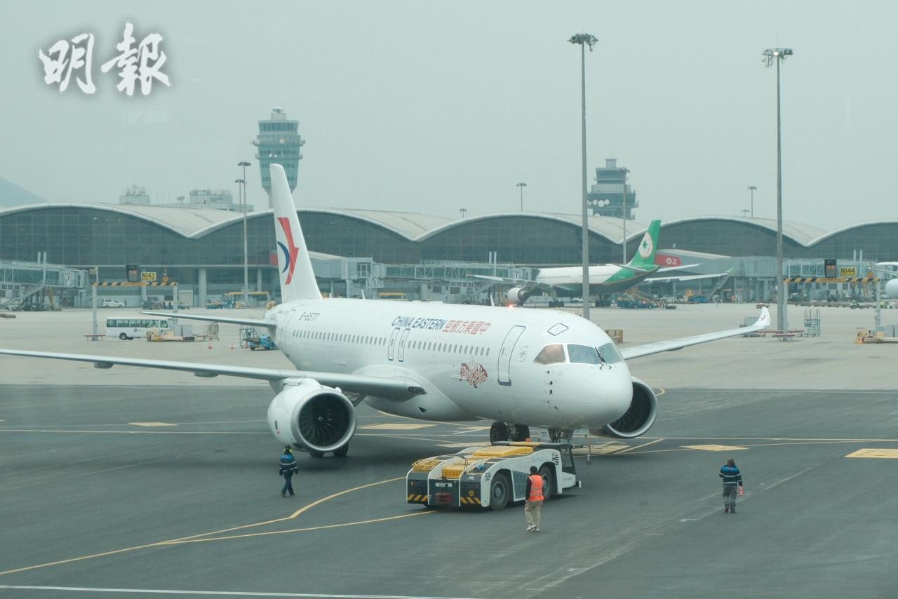 東航C919今早8時15分由上海首發;從香港至上海的航班則在下午約12時44分啟航,約下午1時4分正式起飛,航班起飛前,機上機長曾向在登機閘口的傳媒揮手。