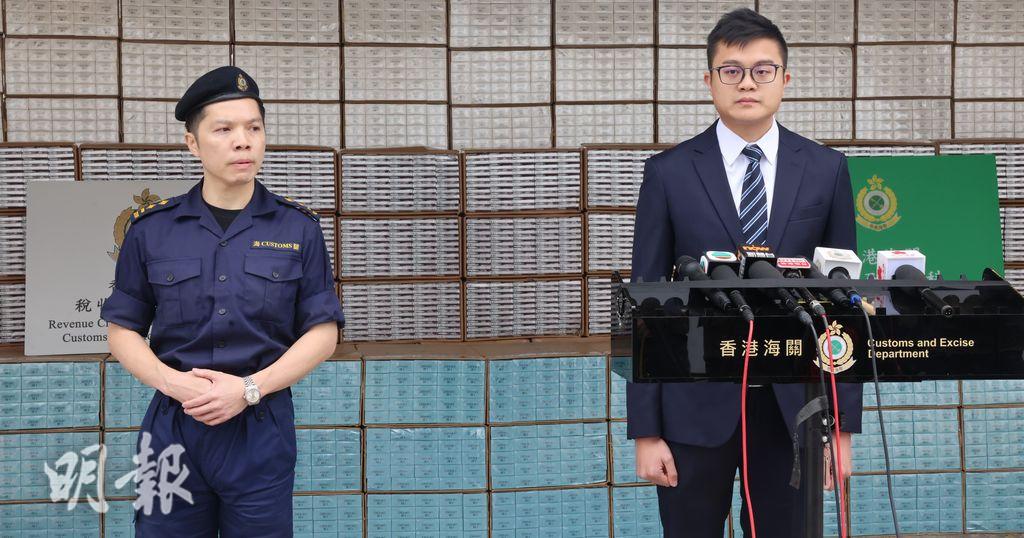 稅收罪案調查科稅收高級調查主任沈焜表示,海關在其中一艘漁船檢獲1500萬支私煙,市值約6900萬元,應課稅值5100萬元,兩名內地男船員被捕。在另一艘船上檢獲1000萬支私煙,市值約4500萬元,應課稅值3300萬元,拘捕4名內地男船員。6名被捕船員年齡介乎35至41歲。