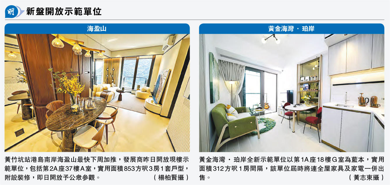 另外,旭日旗下屯門青山公路青山灣黃金海灣‧珀岸,對外展示以第1A座18樓G室為設計藍本的全新示範單位,實用面積312方呎1房間隔,以「北歐恬靜珀岸」為主題;室內以大地色系為主調,鋪砌淺色木紋地板,配以木質和古銅色金屬家具。睡房以木系及玫瑰金作佈置主調,而開放式廚房提供大量收納空間。