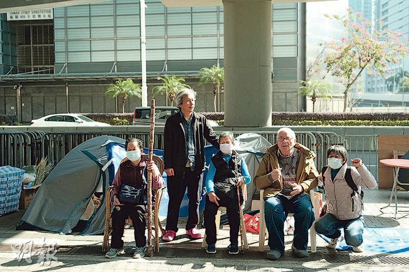 【明報專訊】甘浩望神父(右二)多年來為港人內地子女爭居港權,今年是全國人大常委會就港人內地子女爭居港權的「吳嘉玲案」釋法26周年,他昨日與港人父母到金鐘政府總部外請願,要求政府放寬單程證限制,在他們如今年老之際,容許港人14歲以上的內地子女申請來港團聚。他們要求與保安局會面討論改變政策的可能,保障跨境家庭權益,並擬在政總外靜坐至本月29日。